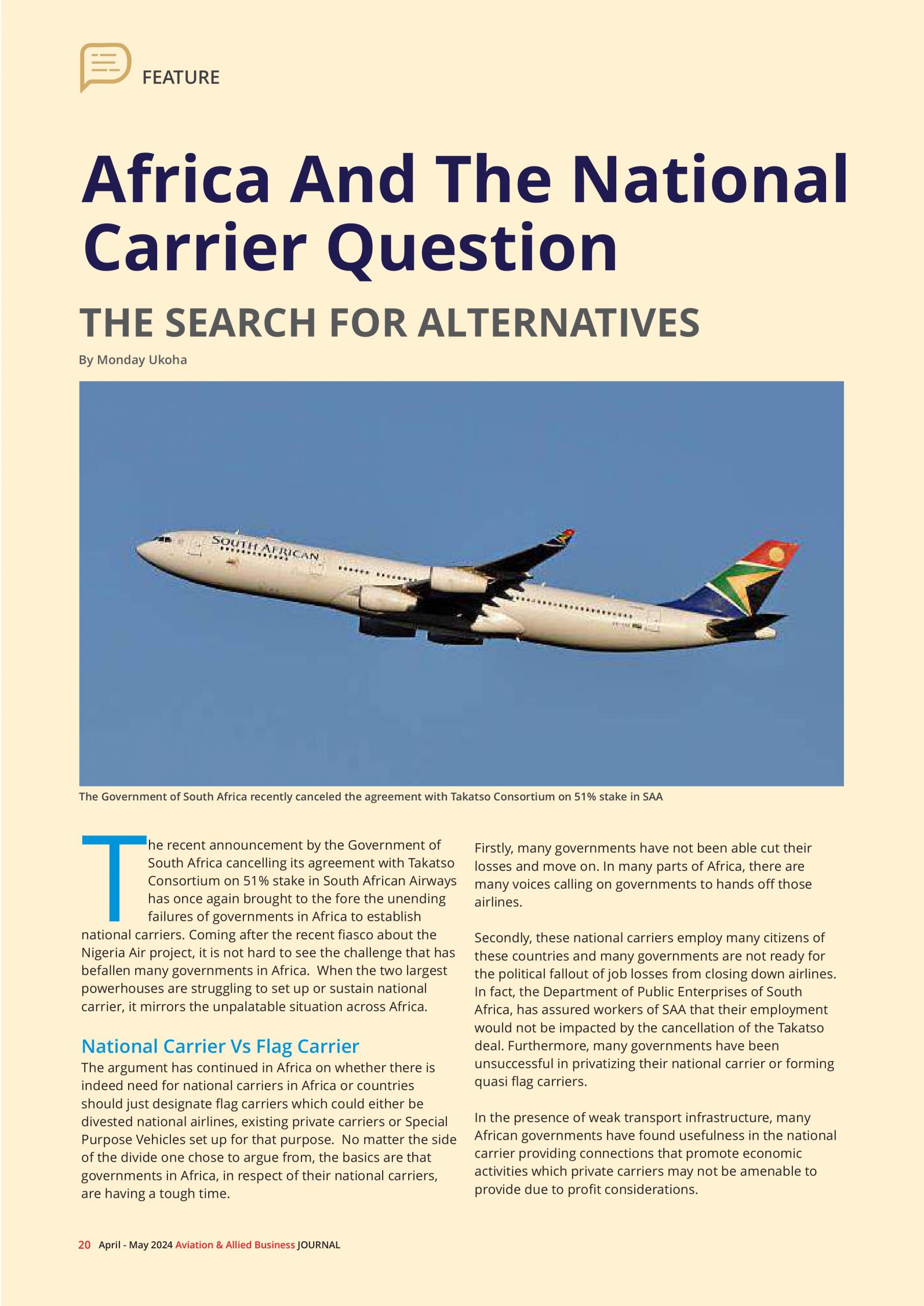 Aviation & Allied Business Publications, an arm of Landover Company Limited, publishers of the Aviation & Allied Business Journal, a leading Africa journal on aviation development and the Aviation & Allied Business Update, a leading magazine on air transport development in Nigeria.