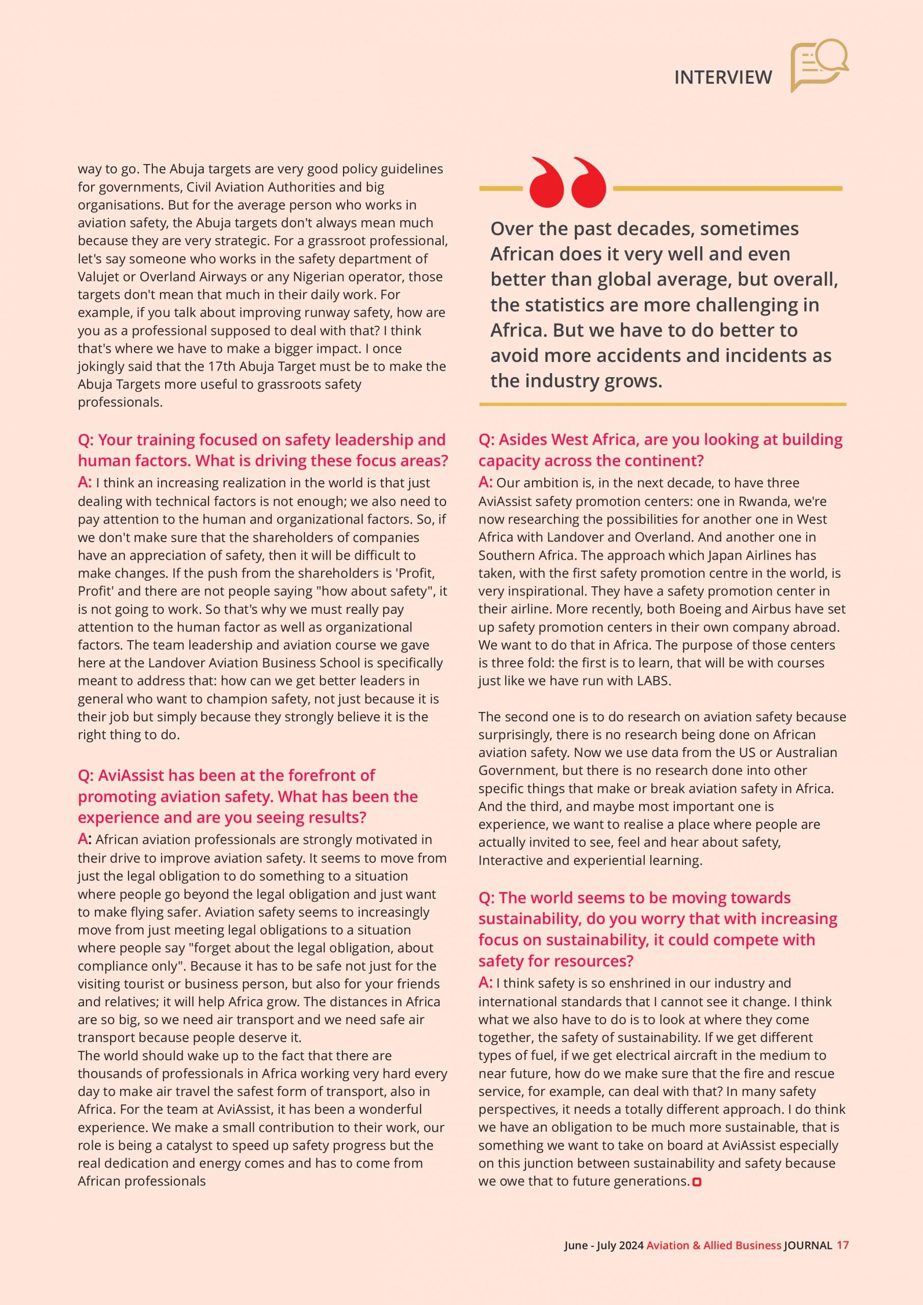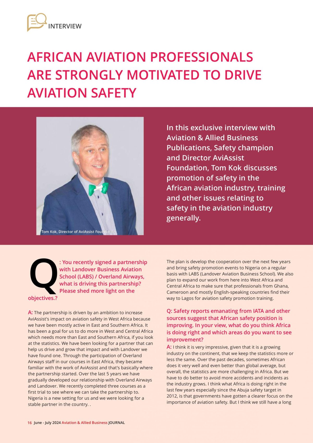 Aviation & Allied Business Publications, an arm of Landover Company Limited, publishers of the Aviation & Allied Business Journal, a leading Africa journal on aviation development and the Aviation & Allied Business Update, a leading magazine on air transport development in Nigeria.