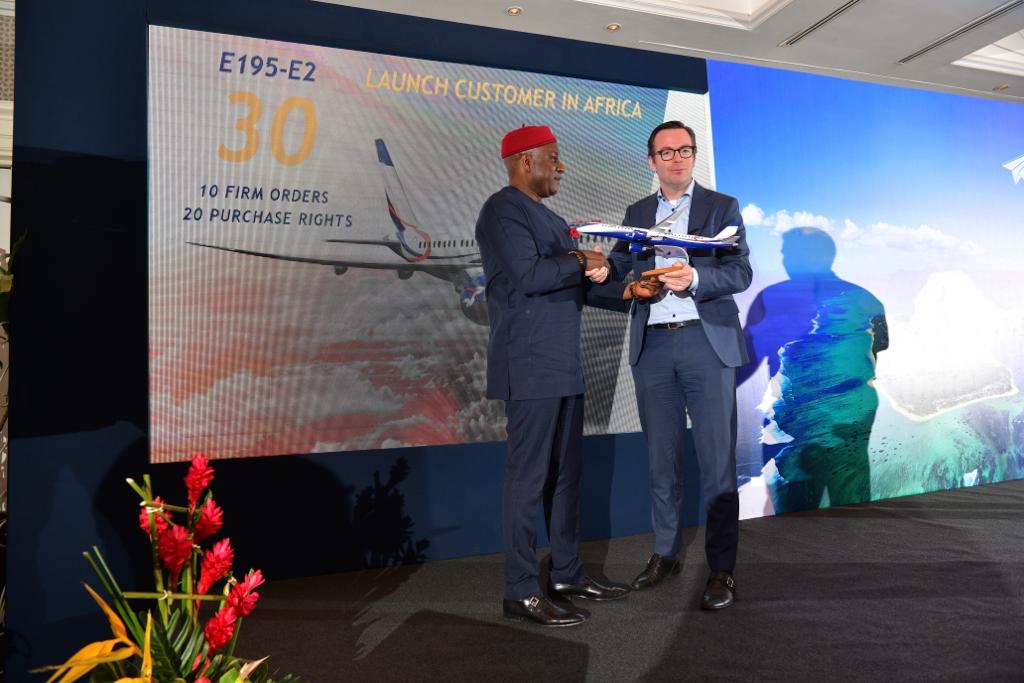 Mr. Allen Onyema, Air Peace Chairman/CEO, says: “Embraer’s new E195-E2 presents us with a marvel of economic performance. It’s also great that we will be the first E2 operator on the African continent. We already have the ERJ145s in our fleet, so we understand the high standards of Embraer products.”
